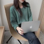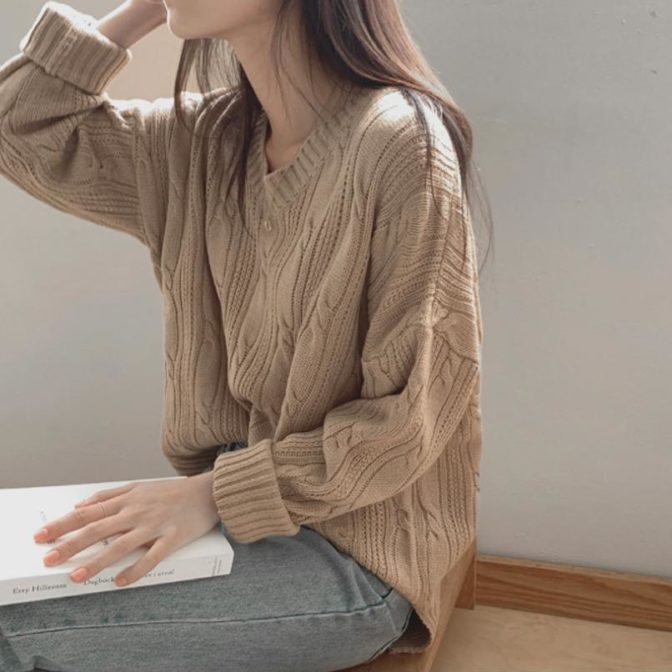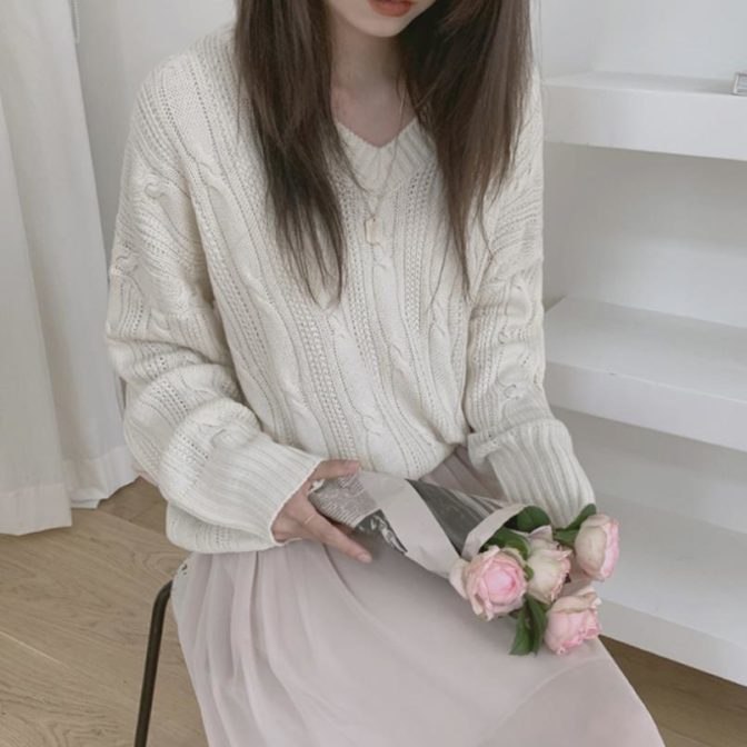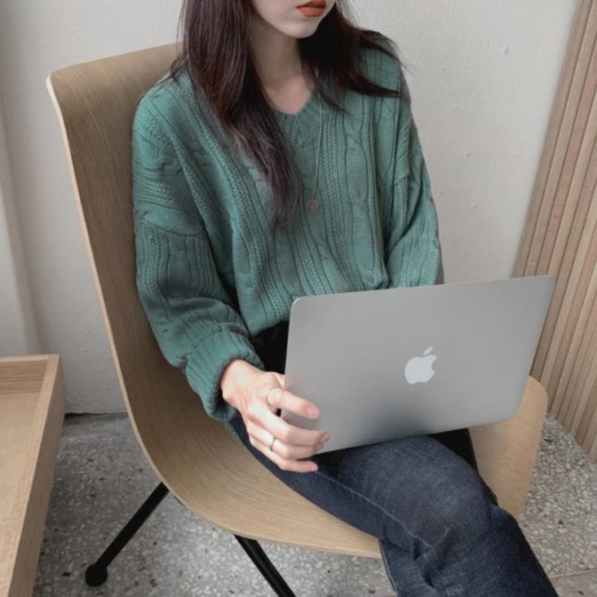 送料無料 ニット 韓国 ラグラン スリーブ レトロ おしゃれ セーター Vネック 春 秋