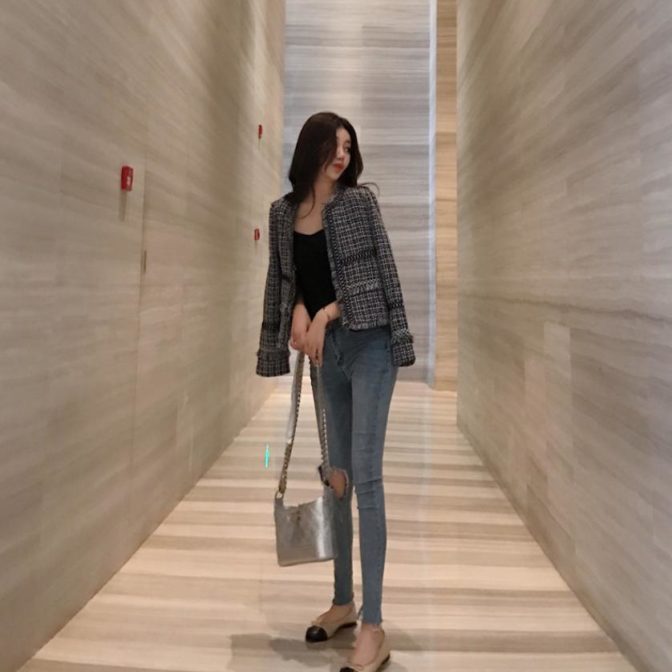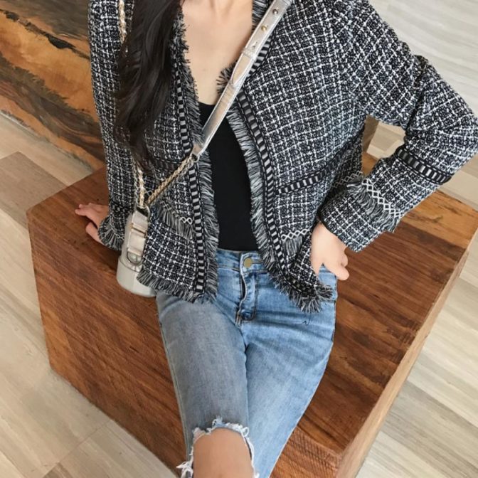 送料無料 韓国 アウター ジャケット 秋 長袖 ショート丈 ほつれデザイン