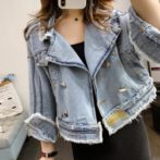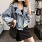 送料無料 韓国 アウター 秋 長袖 デニムジャケット ショート丈