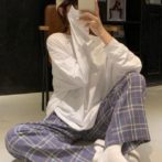 送料無料 韓国 セット Tシャツ ワイドパンツ チェック柄