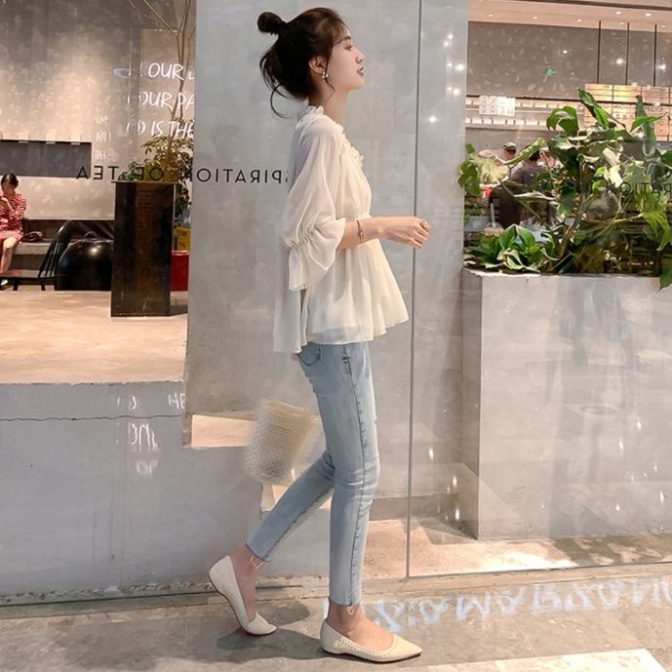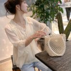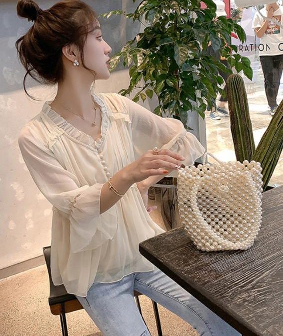 送料無料 韓国 トップス シフォンシャツ 夏 秋 七分袖