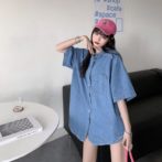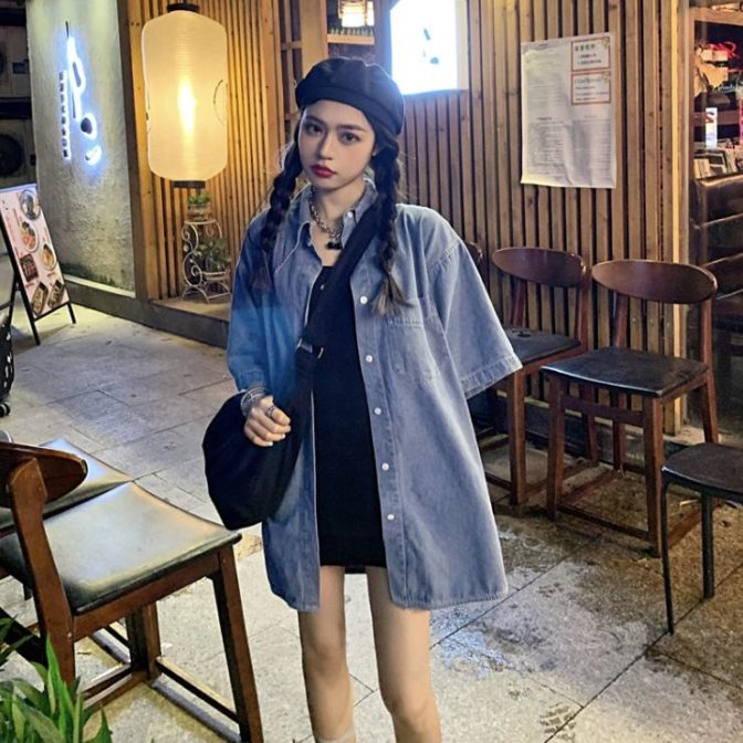 送料無料 韓国 トップス シャツ 夏 半袖 レトロ オーバーサイズ