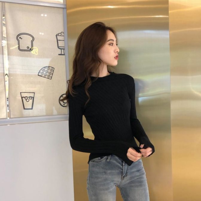 送料無斁E韓国 トップス セーター スリム 私E冬