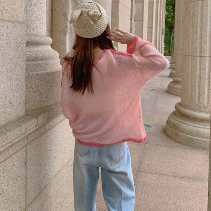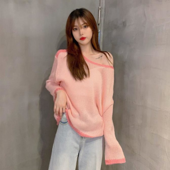 送料無斁E韓国 トップス セーター 私E長袁Eルーズ