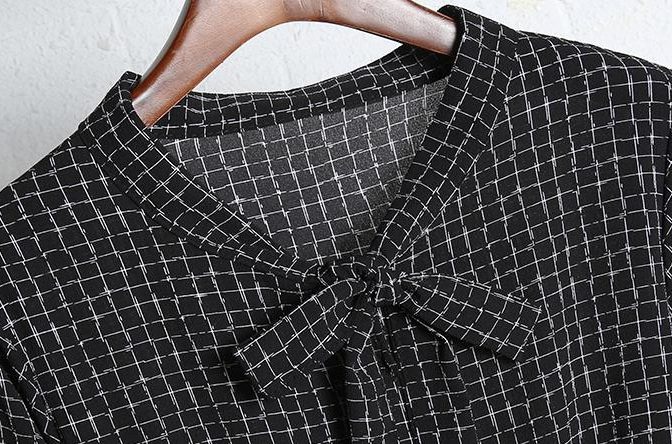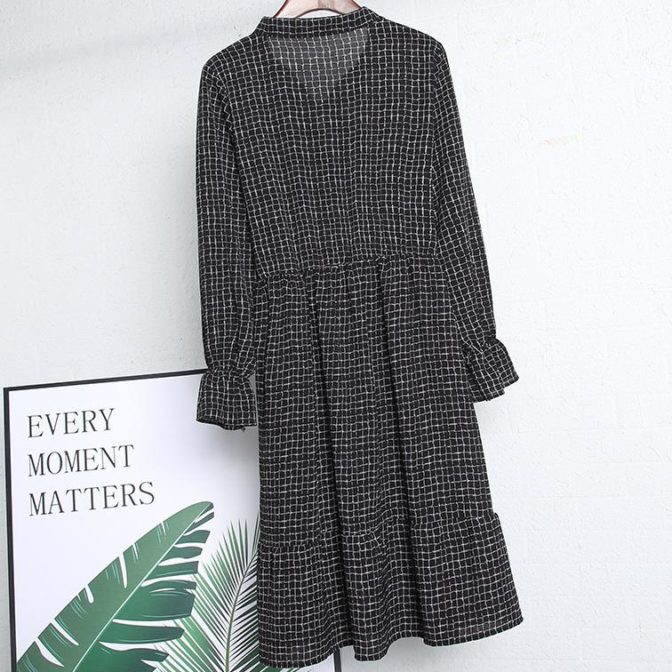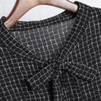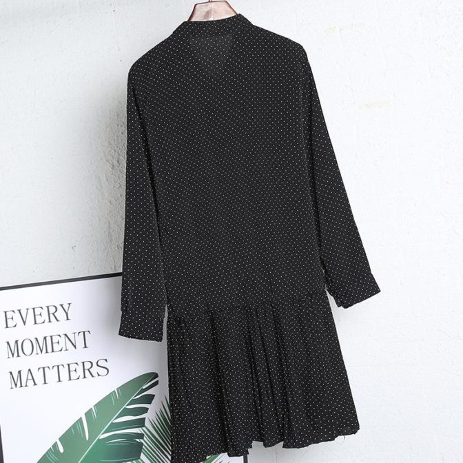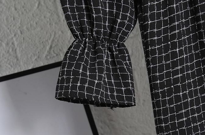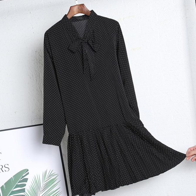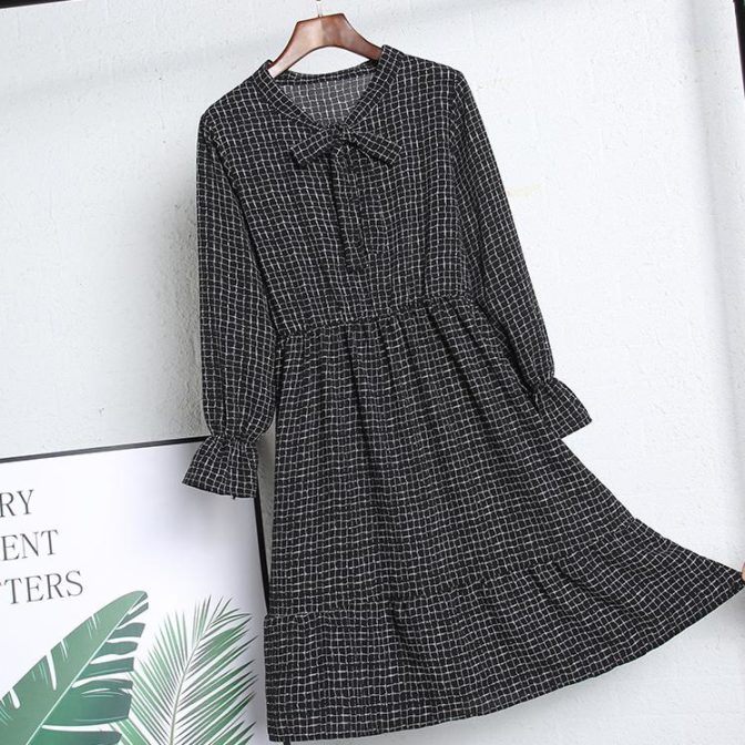 送料無料 韓国 ワンピース 夏 秋 長袖 トランペットスリーブ シフォンスカート リボン