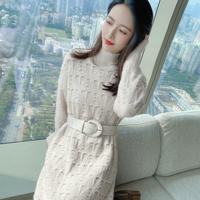 送料無料 韓国 ワンピース 秋 冬 ニットセーター レトロ