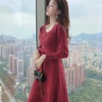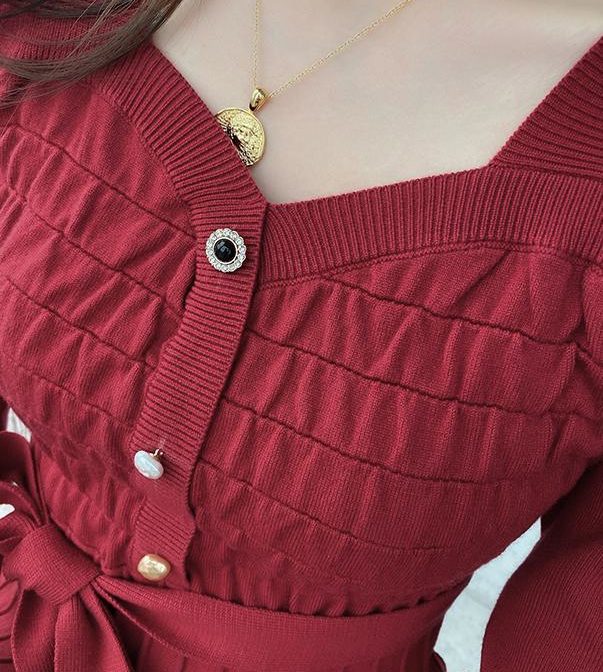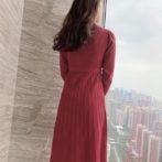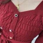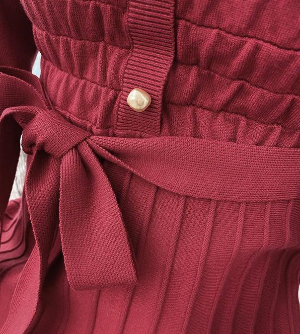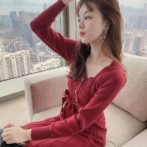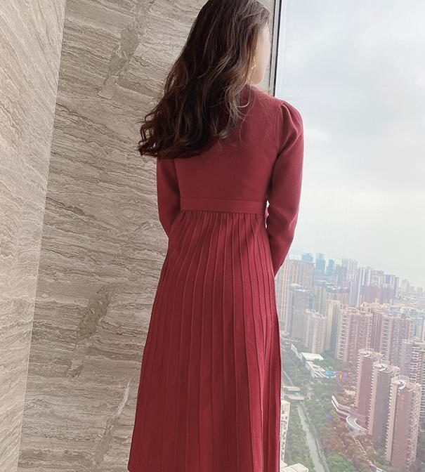 送料無料 韓国 ワンピース 秋 冬 ハイウエスト ニットドレス ミドル丈