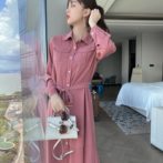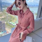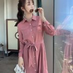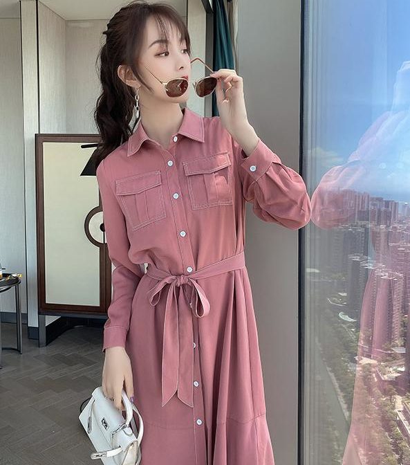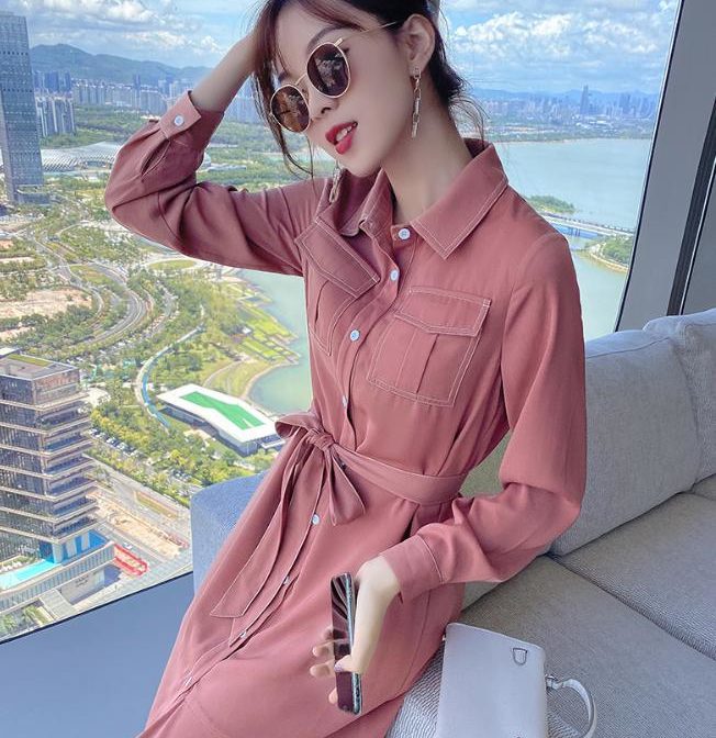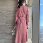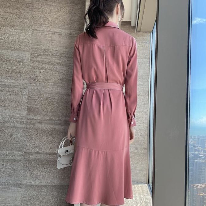 送料無料 韓国 ワンピース 秋 長袖 ハイウエスト ミドル丈