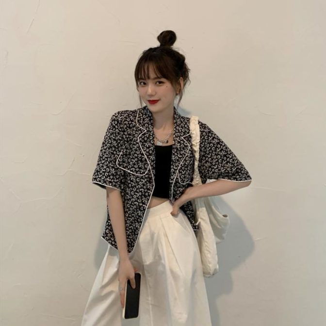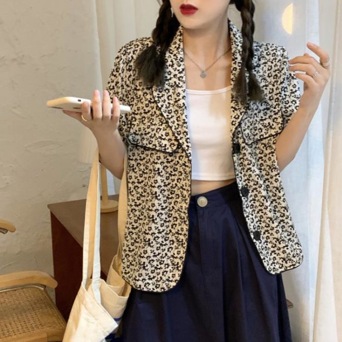送料無料 韓国 アウター トップス シャツ ショートジャケット 夏 半袖 レトロ 花柄