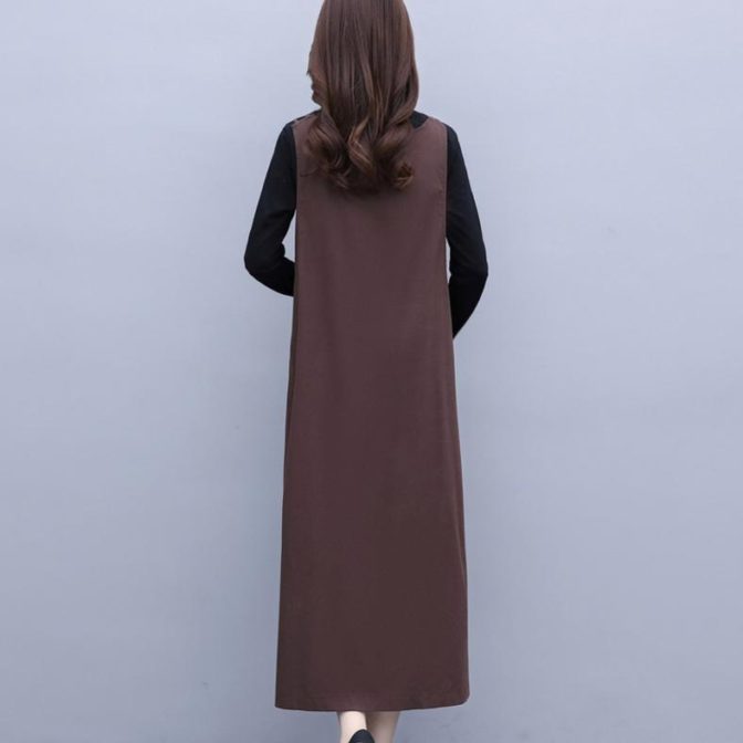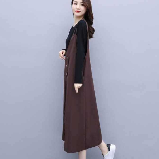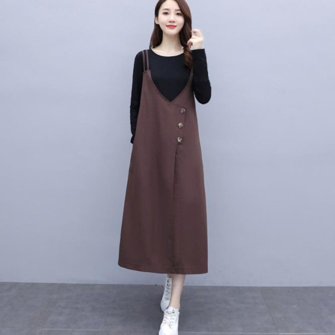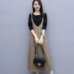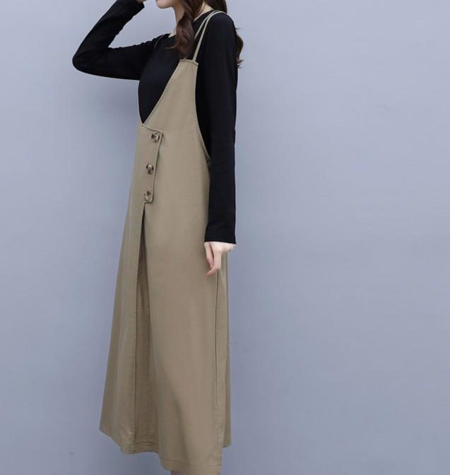 送料無料 韓国 ツーピース 夏 秋 長袖 Tシャツ キャミソールワンピース ロング