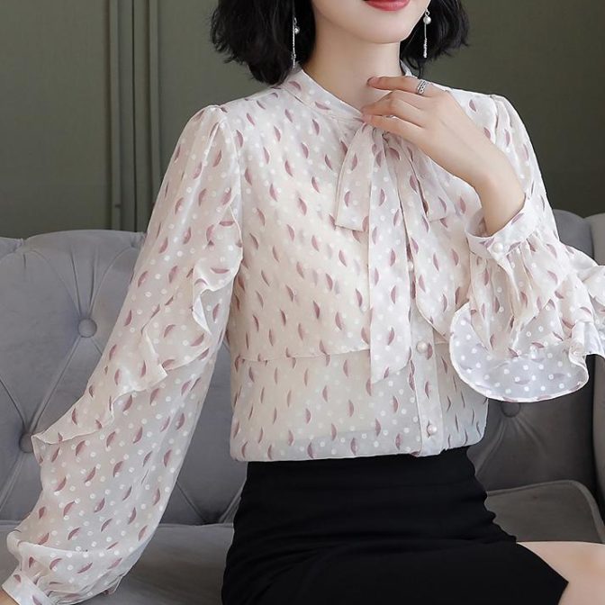 送料無斁E韓国 トップス 私EシフォンシャチE長袁E1