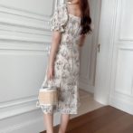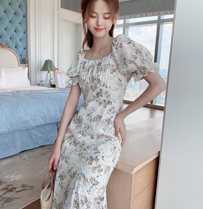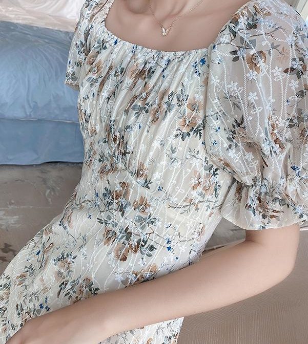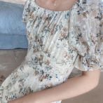 送料無料 韓国 ワンピース 夏 半袖 パフスリーブ 花柄