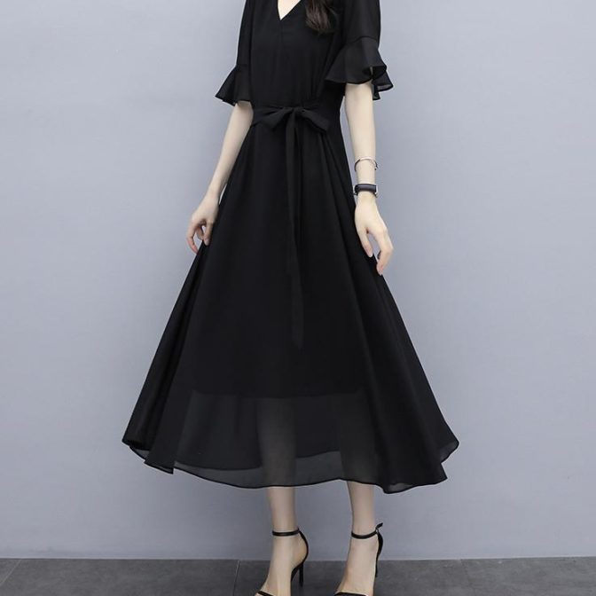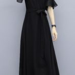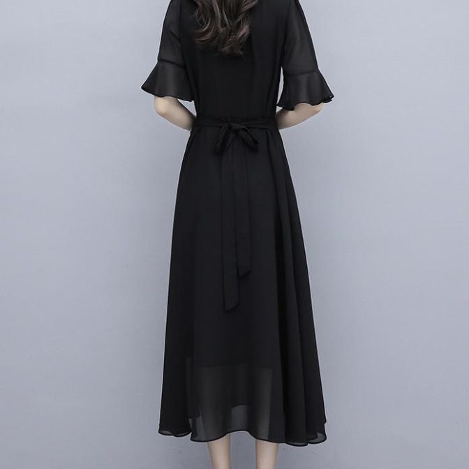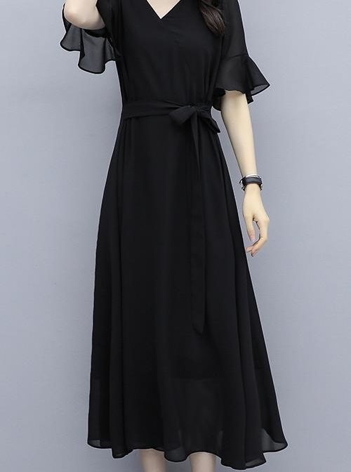 送料無料 韓国 ワンピース 夏 半袖 フレア袖 ロング丈