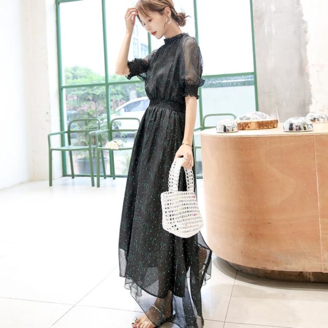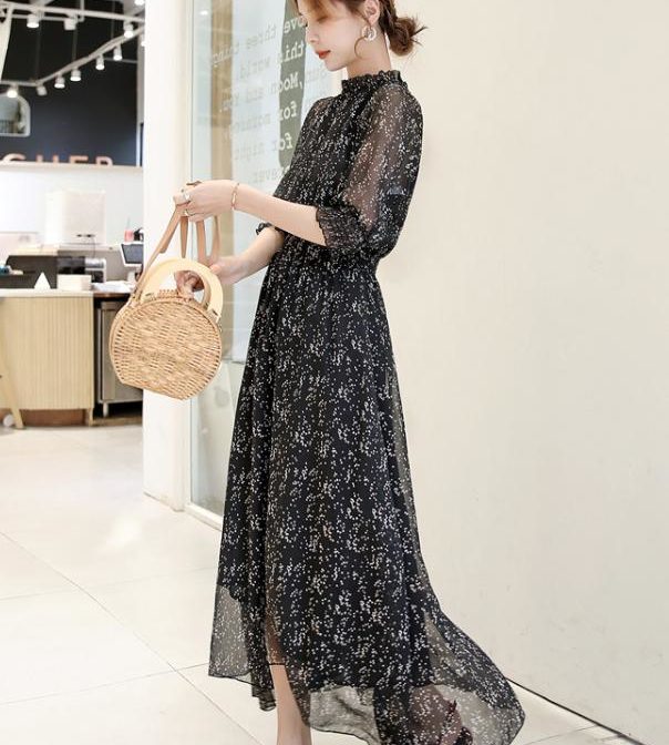 送料無料 韓国 ワンピース 夏 半袖 ラグランスリーブ ロングスカート 花柄