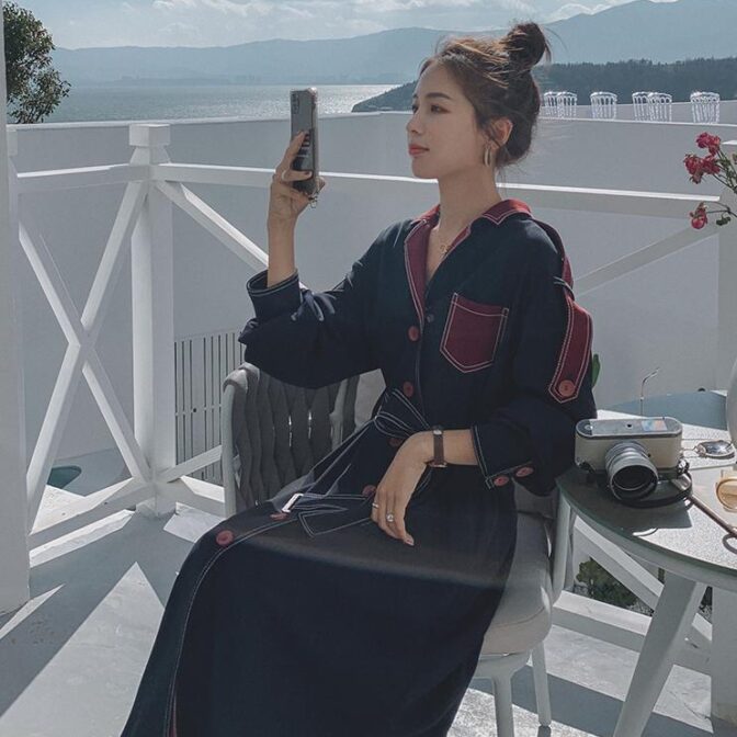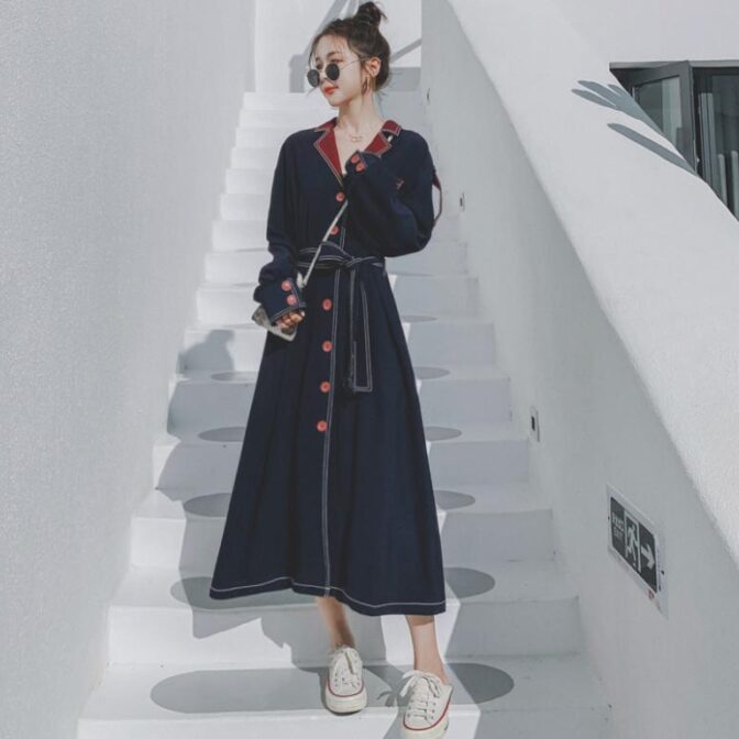 送料無料 韓国 ワンピース 春 レトロ ミドル丈