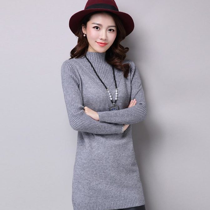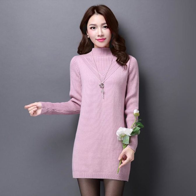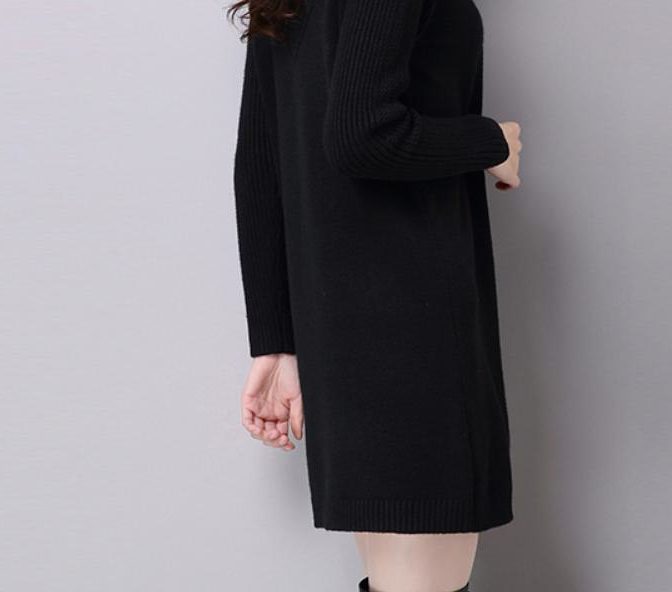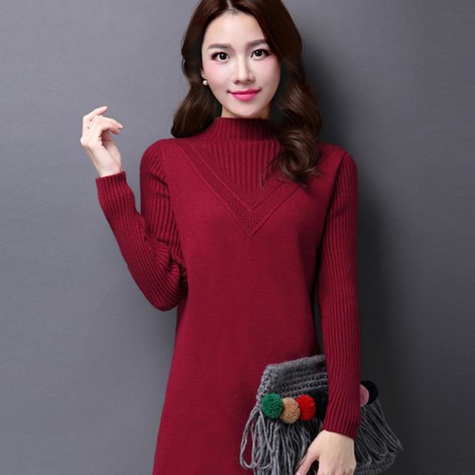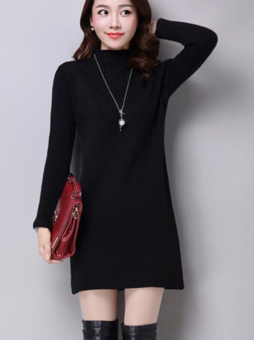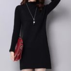 送料無料 韓国 ワンピース 秋 冬 プルオーバー ハイネック 長袖