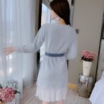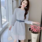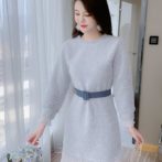 送料無料 韓国 ワンピース 秋 冬 ミドル丈 ラウンドネック