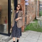 送料無料 韓国 ワンピース 長袖 秋 トランペットスリーブ Vネック